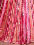 Wonderful Pink Embroidered Chinon Silk Wedding Wear Lehenga Choli